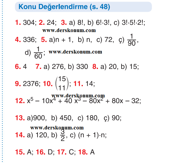 10 Sınıf Matematik Ders Kitabı Cevapları
