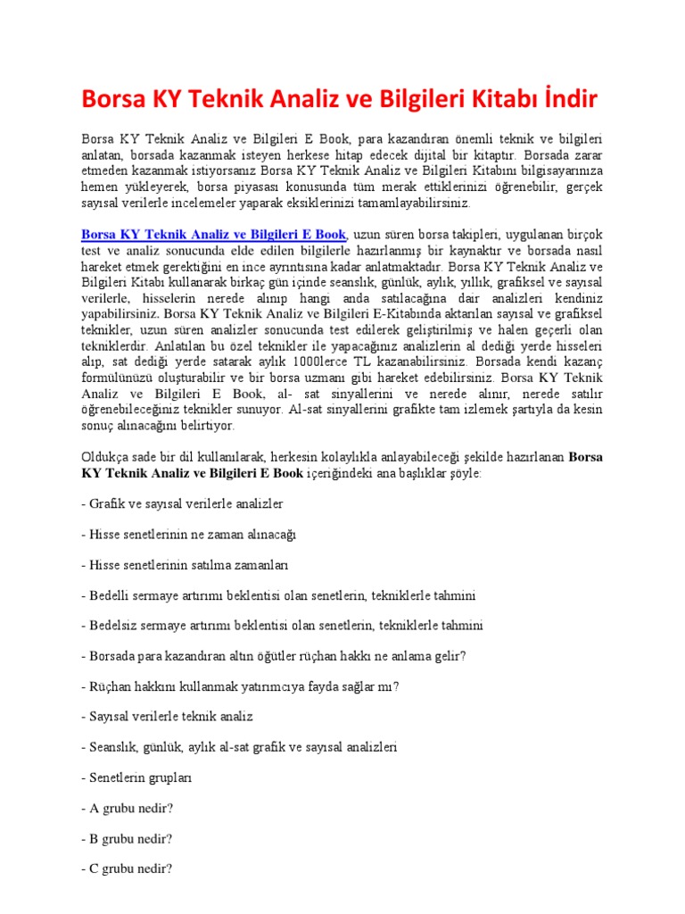 Borsada teknik analiz el kitabı para kazandıran önemli yöntem ve bilgileri anlatan borsada kazanmak isteyenlere hitap eden dijital bir e kitaptır borsada zarar etmeden kazanmak istiyorsanız borsada teknik analiz el kitabını bilgisayarınıza hemen indirerek borsa piyasaları konusundaki tüm merak ettiklerinizi öğrenenerek gerçek sayısal verilerle incelemeler yaparak kendinizi.