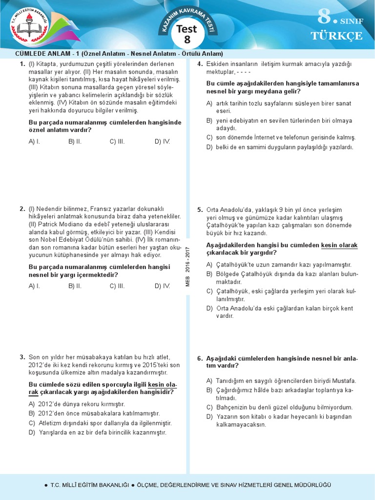 Cümlede anlam test kitabı. Sınıf sözcükte anlam test pdf lgs sözcükte lgs sözcükte anlam test pdf 8. Yayımlanan her kitabı okumak zorundadır eleştirmen. A faruk nafiz çamlıbel hece ölçüsünü en iyi kullanan şairlerimizden biridir. A her şair ve yazar bir düşüncenin savunucusu olamaz.