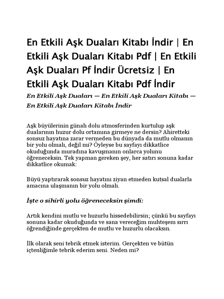 Aldatılmış terk edilmiş ihanete uğramış ya da var olan. En etkili aşk duaları kitabı nın en önemli özelliklerinden biri de aşk dualarının özel vakitleri dir. Kenzül aşk kenzül aşk hakkında kenzül aşk aşık olduğun kişiyle kalplerinizin birleşmesi için uygulayabileceğin aşk dualarının yer aldığı bir üyelik alanı olan kudretli dualar ın aşk dualarıyla ilgili bölümüdür. Dualar için özel vakitlerin olduğunu herkes bilir.