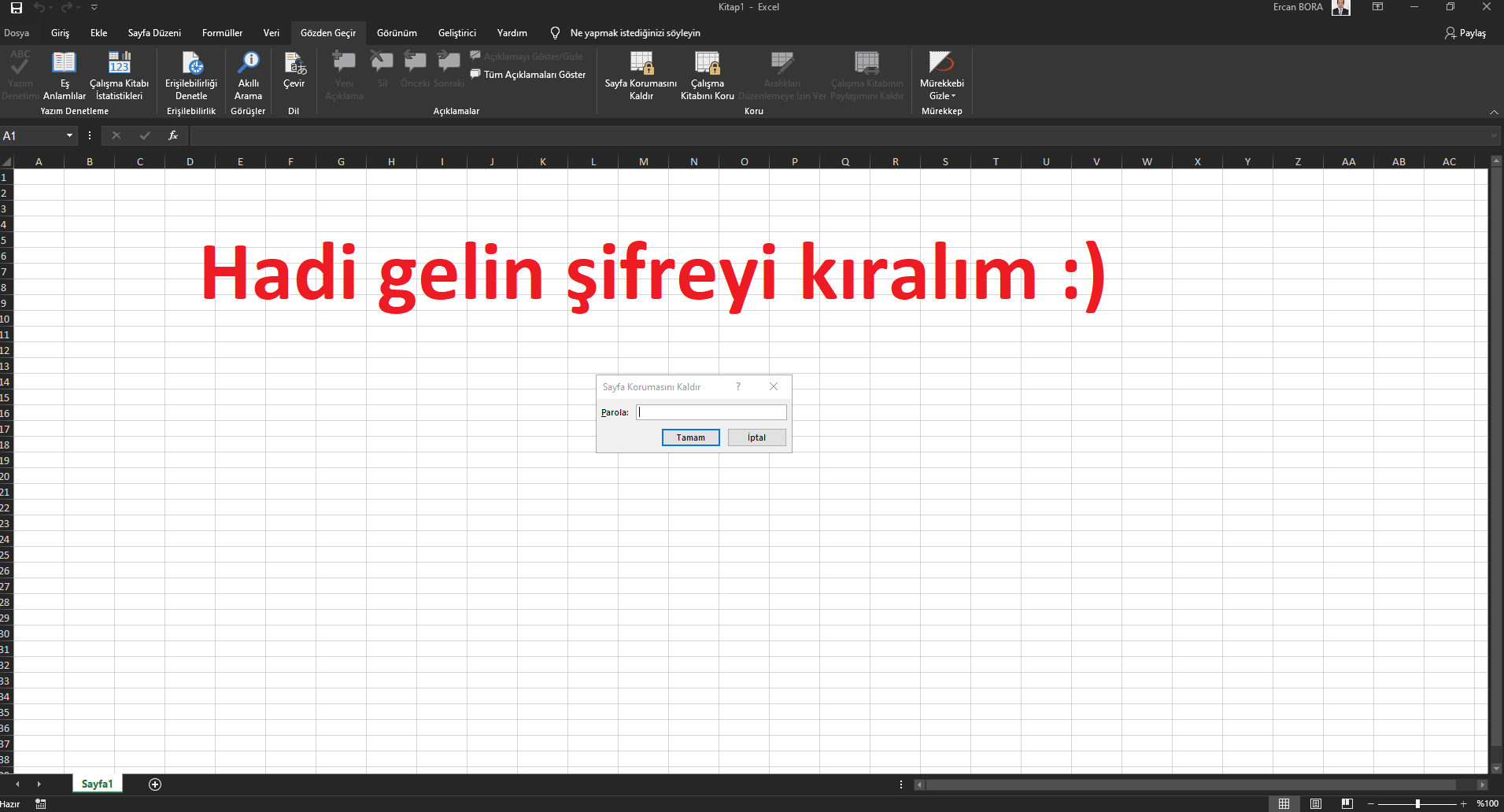 Excel çalışma Kitabı Koruma şifre Kırma
