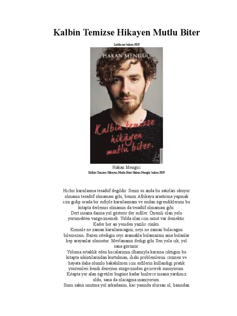 Hakan mengüç kalbin temizse hikayen mutlu biter kitabı. Hakan mengüç ün kalbin temizse hikayen mutlu biter adlı kitabı raflarda girne amerikan üniversitesi sufi akademisi nin kurucusu ve öğretim görevlisi hakan mengüç ün kalbin temizse hikayen mutlu biter adlı yeni kitabı okurla buluştu ney in yolculuğundan ilhamla insanın kemale erişmek için çıktığı. Kalbin temizse hikayen mutlu biter hakan mengüç. Hiçbir karşılaşma tesadüf değildir. Kalbin temizse hikayen mutlu biter 8 10 208 kişi favori̇leri̇me ekle.
