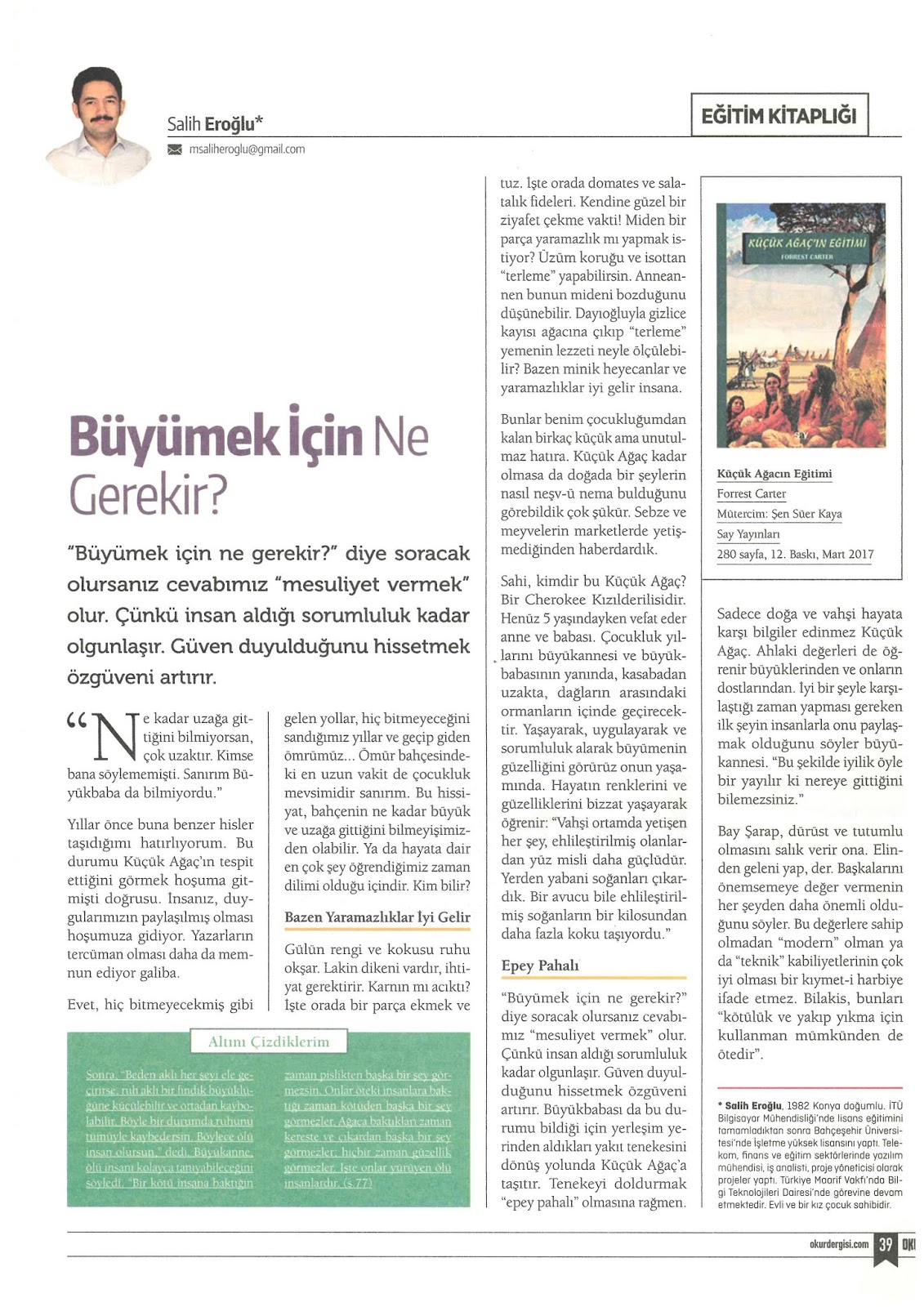 Küçük ağacın eğitimi kitap. Küçük ağaç ın eğitimi küçükken kızılderili adetlerine göre yetişmiş yazarın kendi eğitim sürecini anılarla ve hikayelerle anlattığı içten bir kitap. Forrest carter in kendi hayatına baktığımızda küçük ağaç kahramanıyla örtüştüğünü görürüz. Eser verdiği toplumsa mesajıyla edebiyat dünyasının gözbebeği konumuna getirilmiştir. Nisan 2012 sayfa sayısı.