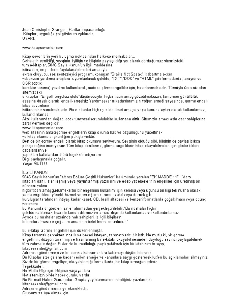 Kitapta türkler e ait bir şeyler bulmak dahada güzeldi. Kurtlar i̇mparatorluğu özet jean christophe grange gibi usta bir yazar kitabında türkiye ye yer verirse insan sevinir fakat kurtlar i̇mparatorluğu kitabını okuyunca sevinsem mi üzülsem mi ikilemi arasında kalıyorsunuz. 14 00 x 23 00 cmkondisyon. Binlerce kitap teknoloji ürünü hediye müzik film ve daha fazlası indirim kampanyalarıyla kültür sanat ve eğlence dünyası d r da.