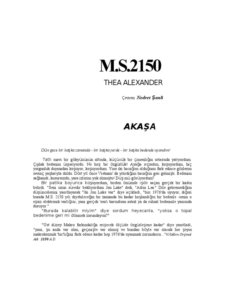 Makro felsefenin dibine vurmuş thea alexander. Yıllardır hep okumak istediğim ama daima araya başka kitaplar girdiği için bırak ertelediğim bir kitaptı ms 2150. Gelin siz de bir gece uyku halindeyken geleceğin güçlerinin yardımıyla günümüzün mikro dünyasından 2150 nin makro dünyasına götürülen amerikalı vietnam gazisi psikolog jon lake in bu mucizevi bilgi dolu yolculuğuna bu vaat ve tehlike dolu serüvenine katılın. Gelin siz de bir gece uyku halindeyken geleceğin güçlerinin yardımıyla günümüzün mikro dünyasından.