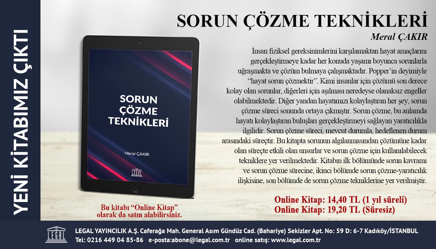 Sorun çözme konusunda yapılmış geniş araştırmalara dayanan bu kitap pratik önerilerle okurun günlük iş yaşamına hemen çözümler getiriyor. Yaratıcı problem çözme teknikleri en uygun fiyat ve hızlı kargo seçenekleriyle idefix te. Bol bol kitap okuyan öğrencilerin problem çözmeleri çok daha kolaydır. Cemal çalik yöneti̇mde problem çözme tekni̇kleri̇ isbn 978 605 364 656 3 doi 10 14527 9786053646563 kitap içeriğinin tüm sorumluluğu yazarlarına aittir.