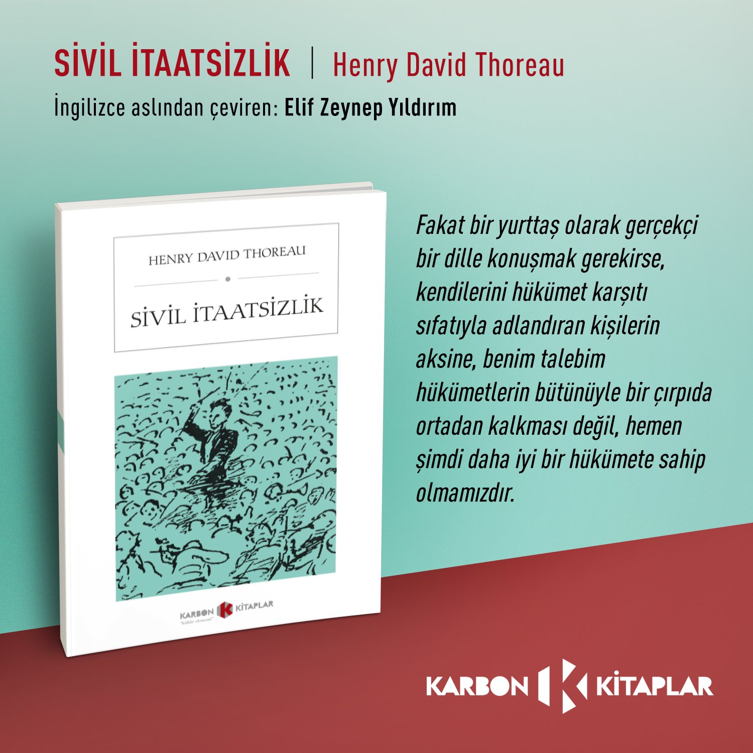 Sivil itaatsizlik terimini siyasi literatüre ilk kazandıran henry david thoreau dur. Sivil itaatsizlik kavramının isim ve fikir babası dünyaca ünlü amerikan filozof aktivist henry david thoreau eserleri ve bu kavramın karşılığını en iyi yansıtan y kuşağı nın türkçedeki tek sosyoloji sözlüğüyle birlikte 5 kitap aynı sette. En iyi hükümet en az hükmedendir sözüyle başladığı bu denemesinde vicdan insan onuru hükümetin gerekliliği gibi meseleleri masaya yatırır. İyi bir doğacı ve çevreci olan thoreau nun 1949 da yayınlanan sivil i̇taatsizlik kitabının yankıları 20.