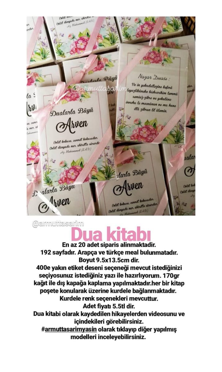 Yasin kitapları mevlitler toplantılar cemiyetler ve özel günlerde kullanabileceğiniz kaliteli baskısı ve hatasız yazımı ile dikkat çeken yasin kitapları kategorimiz içerisinde incelenebilir en kaliteli kağıtlar ve ofset baskı tekniği ile hazırlanan ürünler kolay okunabilme özelliği ile ön plana çıkıyor. Etikete basılmasını istediğiniz yazıyı sipariş notu kısmına ekleyiniz. Bu faziletlerden birisi de hastalıklı olan bir kişinin yasin kitabı okuması ile hastalıklardan kurtulduğuna inanılır. özel etiket üzerine istediğiniz yazıyı yazıyoruz.